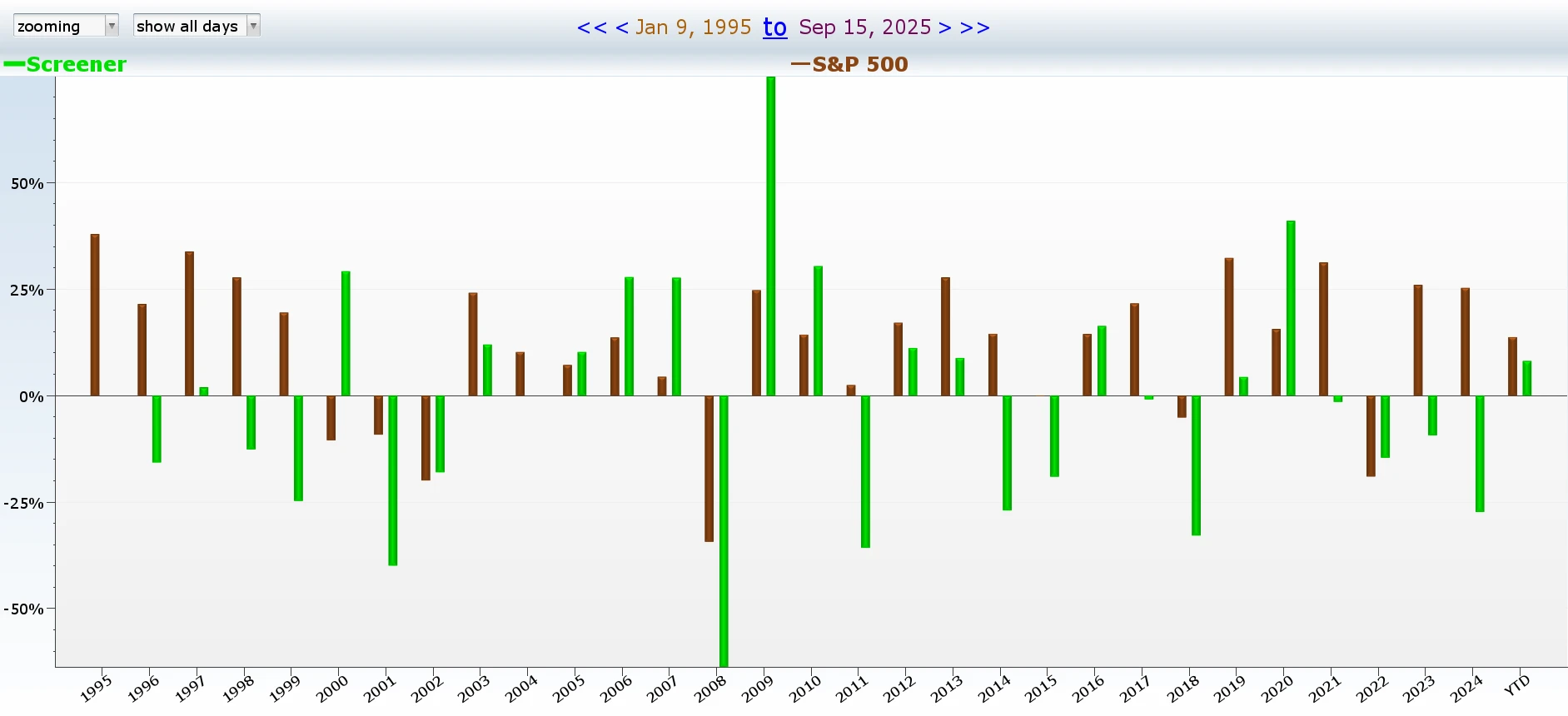 Here’s what makes this so maddening: there were golden years where this strategy absolutely crushed it – 2009 and 2020 were legendary for anyone shorting fundamentally broken momentum stocks. These occasional jackpots create the dangerous illusion that you’ve cracked the code.